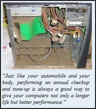 Sign up for a maintenance plan to not only keep the inside of your computer nice and tidy but your tech will also complete the other steps to check overall system wide health. Having the system maintained regularly will reduce major repair costs and equipment failures. Your system will last longer and be more efficient.